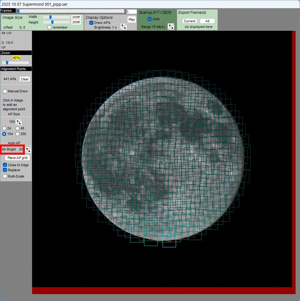 Für das Stacking habe ich 243 Aufnahmen gemacht.