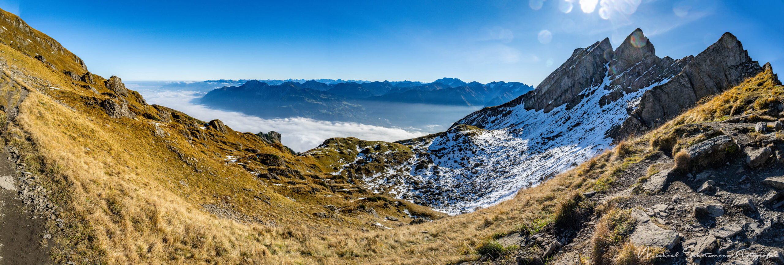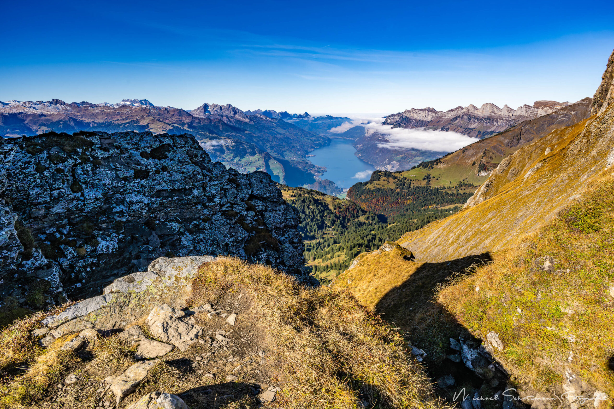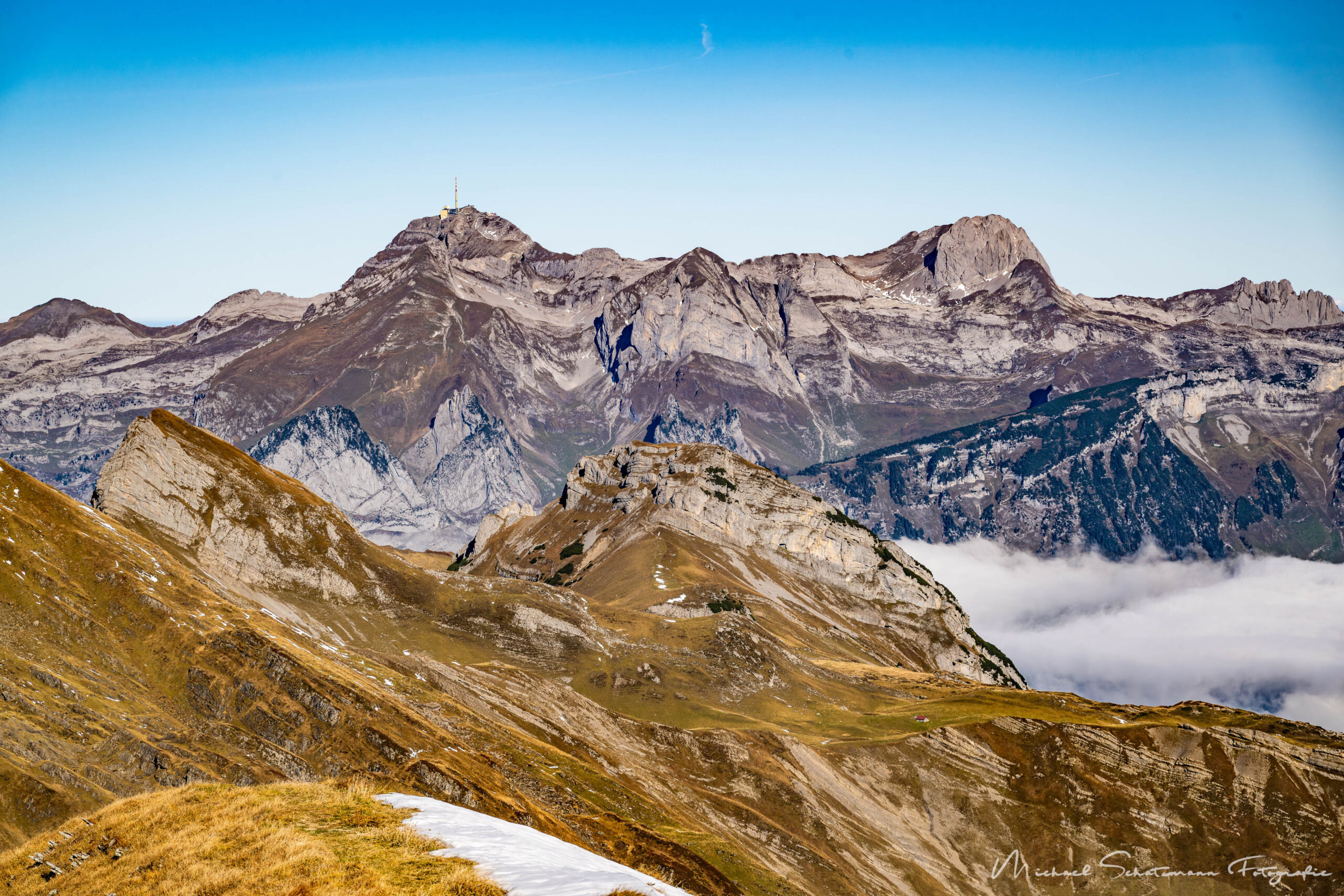 Wenn man schon die Möglichkeit hat, vom sonnigen Herbstwetter in den Bergen zu profitieren, dann sollte man das auch tun. Tendenziell – wen wundert’s – Richtung Alpstein. Es war wieder einmal das Alpsteingeissli, das mich auf eine andere Gegend aufmerksam machte: Alvier. Alvier? Ich gebe es zu, der Name war mir auch nicht geläufig, ich behaupte aber, dass es niemanden gibt, der bei der Fahrt durch das Seeztal nicht schon einmal daran vorbeigekommen ist. Seeztal? Nie gehört? Liegt zwischen Walensee und Sargans…